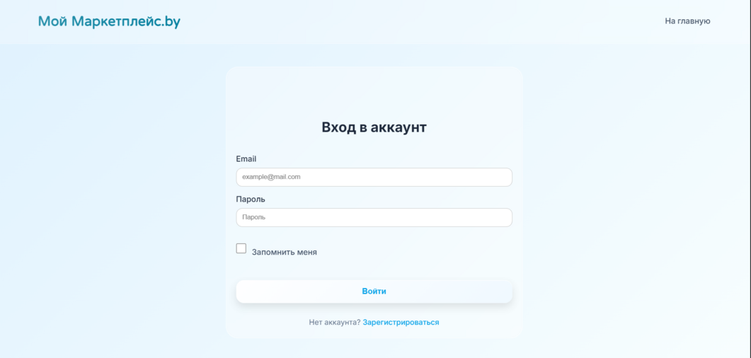 5.2. Авторизация Если у вас уже есть аккаунт, введите данные вашего аккаунта и нажмите на кнопку "Войти". После этого вас оправит на страницу профиля.