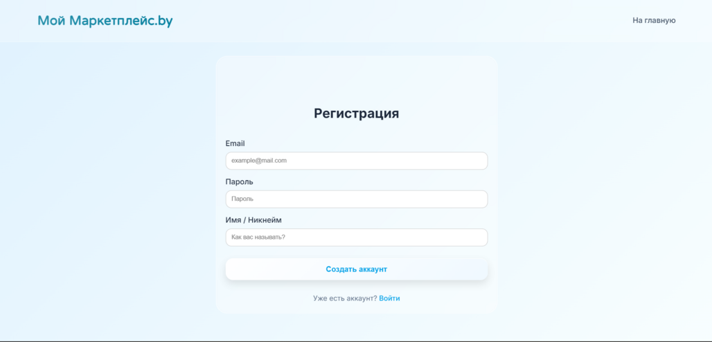 Для того, чтобы зарегистрироваться, заполняйте поля все ввода. После ввода всех полей Нажмите на кнопку "Создать аккаунт".