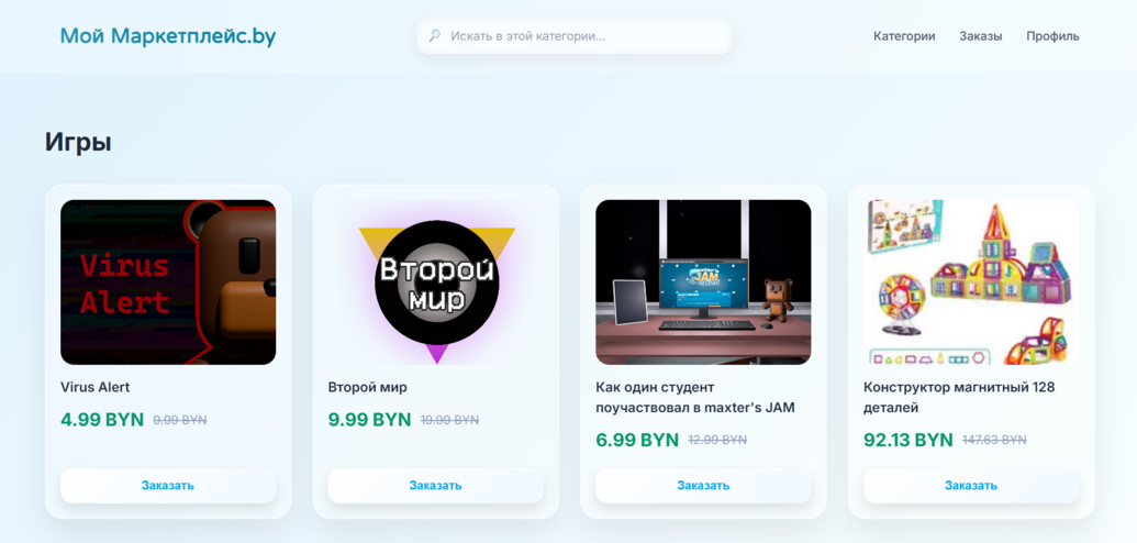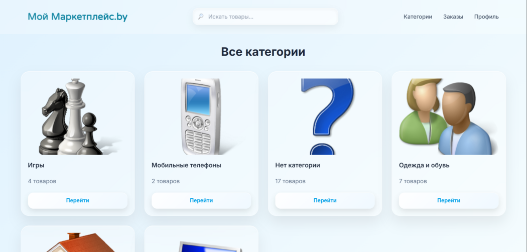 3. Страница категорий На данной странице отображаются все категории товаров. При нажатии отрывается окно товаров выбранной категории.